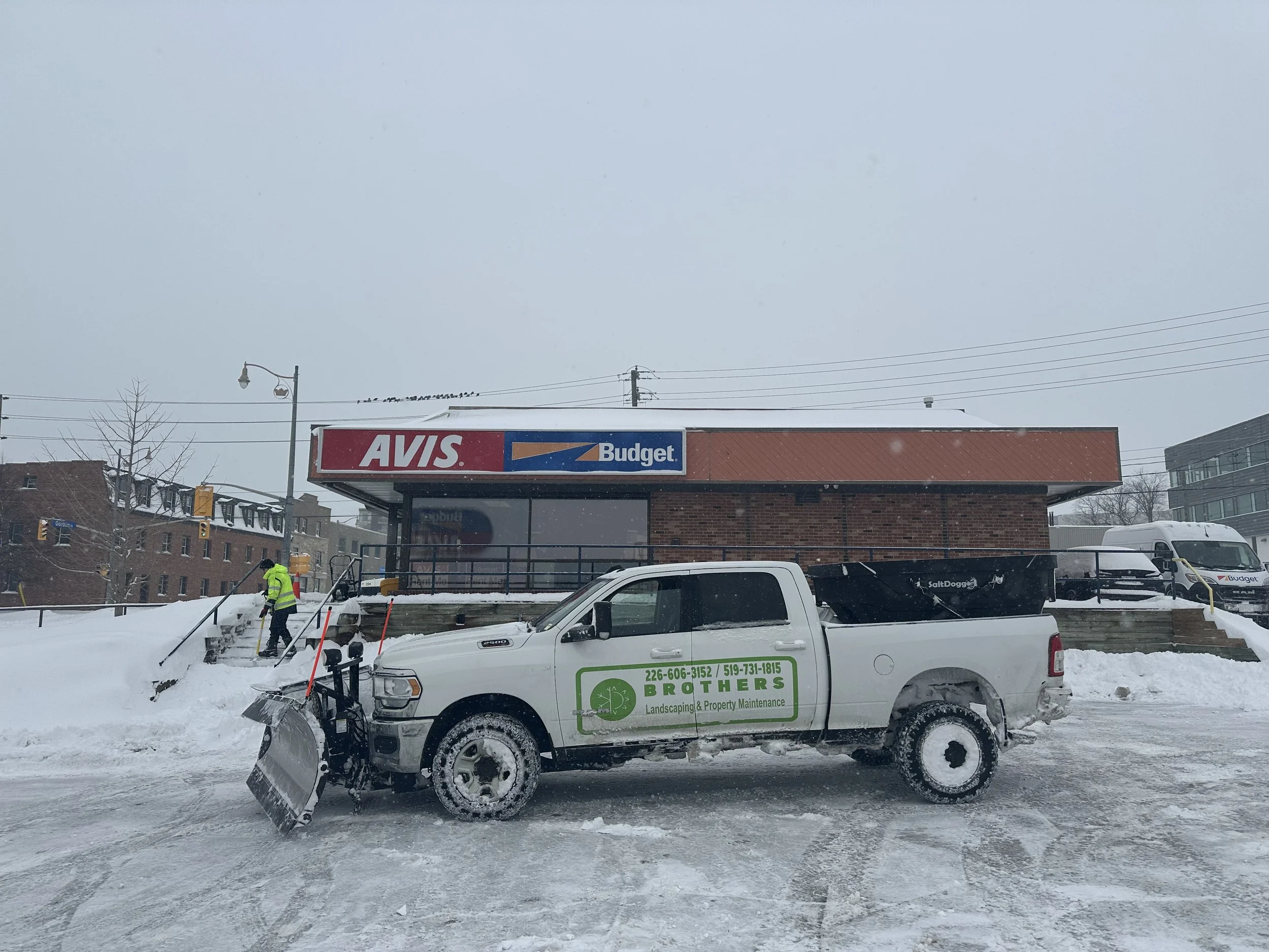 At Brothers LPM, we offer 24/7 full service snow removal in Kitchener, Waterloo, Guelph, Cambridge, Puslinch, Fergus, Elora, Elmira, Ayr, Aberfoyle and surrounding areas. Our goal is to reduce risk associated with ice and snow and to keep your property safe and accessible throughout the winter months. Our teams remain on call from November 1 - April 30 and work around the clock to ensure successful operations.